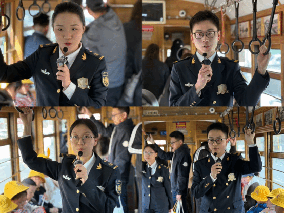 本次活动面向青少年群体打造沉浸式研学体验。学院依托海盾宣讲团,选派5名成员全程担任助教与小组长,与青少年及家长一起登上201路“国安号”主题有轨电车,并结合专列车厢内的国家安全主题布置,用通俗易懂的语言为青少年生动讲解相关知识,让大家深刻领会国家安全的丰富内涵与重要意义,让国家安全教育在行进中入脑入心,为后续研学活动筑牢思想基础。
