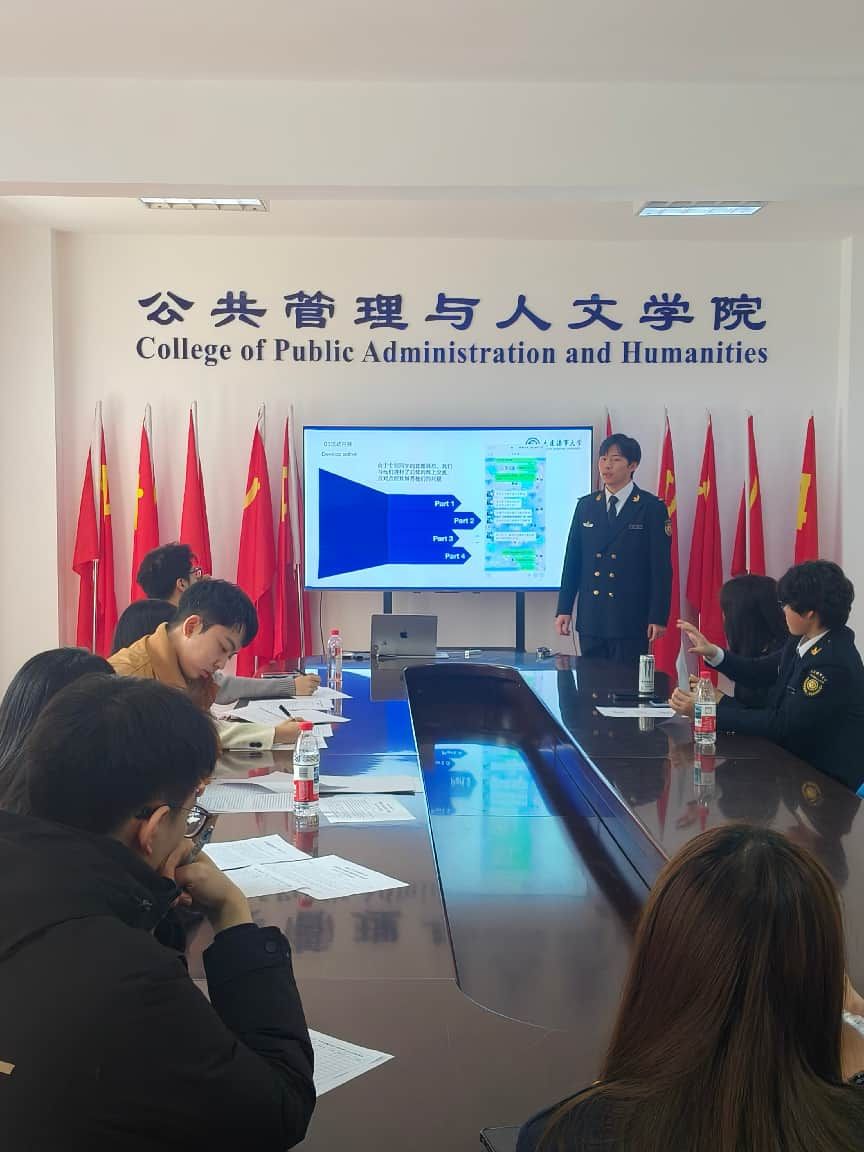 答辩中在党团活动室开展了“母校行”答辩活动。各支队伍通过PPT宣讲的形式向学院评委老师们展示了团队在假期精心开展的实践活动成果。一场场精彩答辩的背后是团队紧锣密鼓的筹备,跨专业的分工协作、对接校方需求定制的宣讲计划等工作。各团队通过沉浸式宣讲系统复盘实践中的创新探索与工作成效,在交流互鉴中梳理特色模式、推广先进经验,既为本次母校行活动画上圆满句号,也为学院后续优化实践育人体系奠定坚实基础,切实将青春实践转化为践行爱校荣校使命、助力海洋强国与交通强国建设的生动力量。