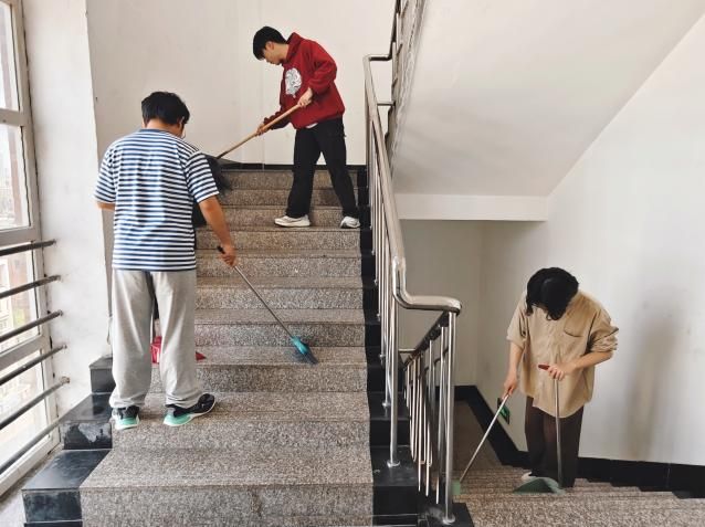 为营造整洁有序、文明和谐的住宿环境,学院持续推进宿舍楼公共区域卫生整治工作。学生们分工协作、细致作业,认真清扫走廊、拖拭地面、擦拭楼梯扶手、清理卫生死角、规整公共杂物,以实际行动维护公共空间整洁,展现了新时代青年学生的责任意识与良好精神风貌。
